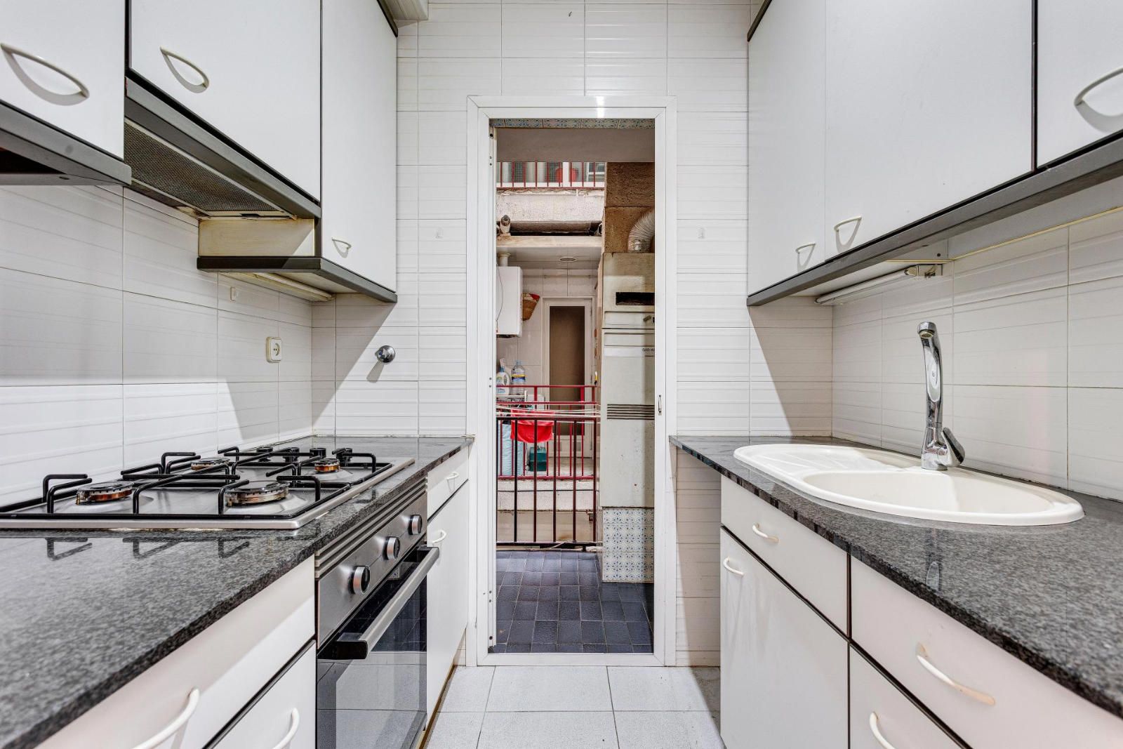 PISO ALTO CON LUZ NATURAL EN SAGRADA FAMILIA – CALLE MARINA CON INDUSTRIA Excelente vivienda en venta situada en calle Marina, en pleno barrio de Sagrada Familia, una de las zonas más demandadas de Barcelona. Se trata de una quinta planta real en finca con dos ascensores, lo que le aporta una excelente altura, abundante luz natural y una agradable sensación de amplitud. La vivienda orienta a un amplio patio de manzana, muy despejado, tranquilo y luminoso. El piso se distribuye de manera funcional en: Tres dormitorios: uno doble exterior y dos individuales interiores, ideales como habitaciones secundarias, despacho o vestidor. Amplio salón-comedor, luminoso y con orientación este. Cocina independiente con galería/lavadero anexo, muy práctica como zona de lavado y almacenaje. Dos baños completos, que aportan comodidad para familias o para quienes buscan mayor funcionalidad en el día a día. La vivienda ofrece una base sólida y una distribución muy aprovechable, con gran potencial de actualización según necesidades. Ubicación inmejorable, en la confluencia de Marina con Industria, rodeado de comercios, servicios, transporte público y a pocos minutos de la Sagrada Familia. Una excelente oportunidad tanto para vivienda habitual como para inversión.