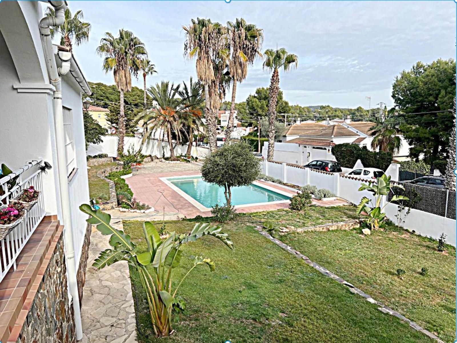 La casa dispone de 4 dormitorios, uno de ellos en suite, además de un baño completo y un aseo de cortesía. En la planta baja, un generoso garaje de 147 m² permite aparcar entre 2 y 3 vehículos según su tamaño. La magnífica piscina de 10 m x 4,75 m, idealmente situada, disfruta de sol desde la mañana hasta el atardecer. Un solárium en la azotea ofrece vistas panorámicas al entorno verde. La parcela de 1.406 m², adornada con majestuosas palmeras y rodeada por un muro blanco, proporciona una intimidad total. En la parte trasera, una encantadora zona de barbacoa con terraza orientada al Oeste permite acceder directamente a la cocina desde una segunda calle. La estación de tren se encuentra a solo 3 minutos, con un enlace directo que conecta con Barcelona en 50 minutos.