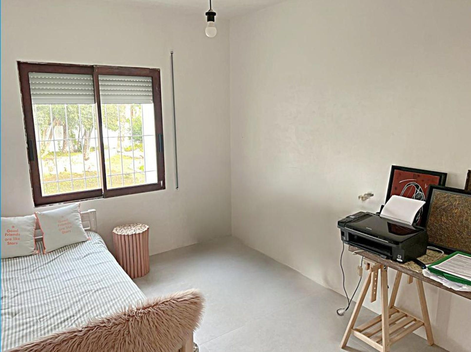 Elegante Villa Estilo Ibiza con Piscina y Palmeras. Descubra esta espléndida casa de una sola planta, totalmente renovada en 2025, donde la luz natural y el ambiente veraniego llenan cada espacio. Con sus paredes blancas y luminosas y su marcado carácter mediterráneo, se vive como una verdadera casa de vacaciones durante todo el año. La propiedad ofrece 141 m² útiles y 347 m² construidos, distribuidos en un solo nivel situado sobre un amplio garaje. El acceso se realiza por una escalera en la parte delantera o directamente a nivel de calle por la parte trasera, lo que aporta una gran comodidad en el día a día. El amplio y luminoso salón, con cocina americana abierta y chimenea, se abre mediante una gran puerta acristalada a una agradable terraza orientada al Este, frente a la piscina. Ventanas orientadas al Sur y al Oeste garantizan una luminosidad excepcional durante toda la jornada.